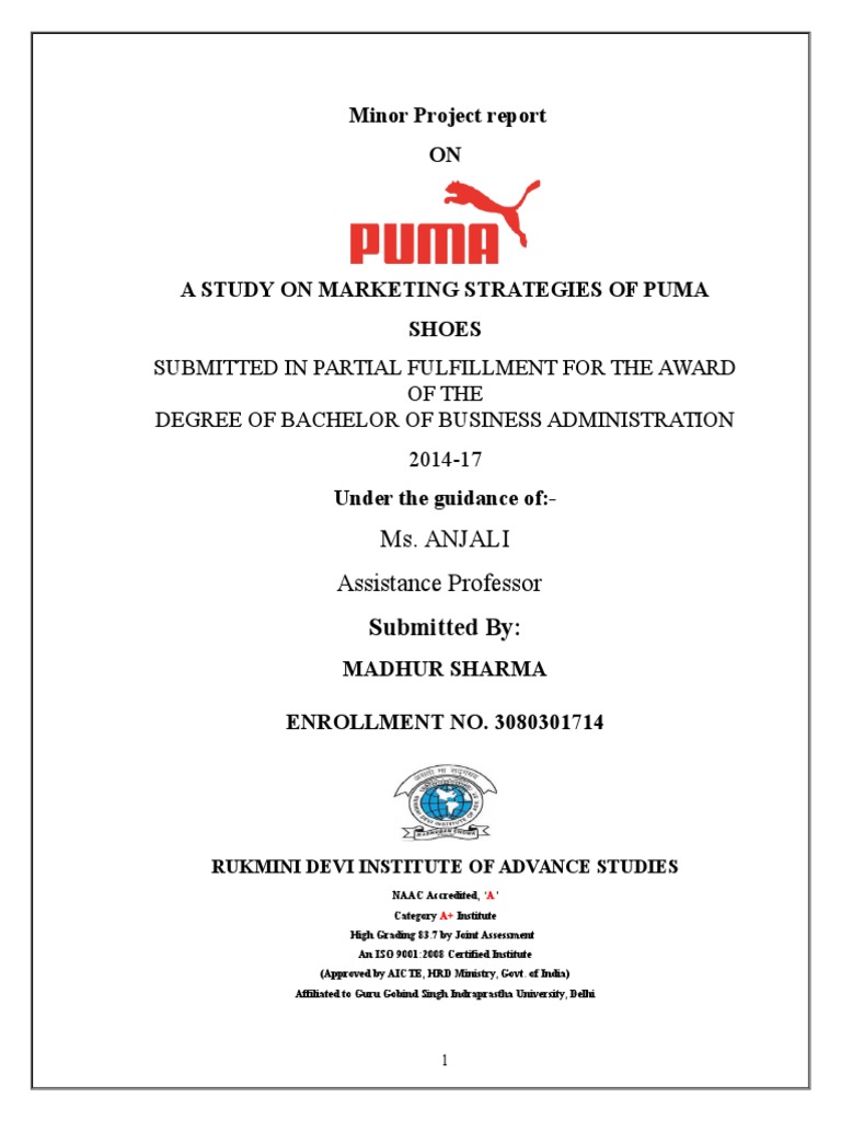 Study On Marketing Strategies Of Puma Shoes Retail Marketing